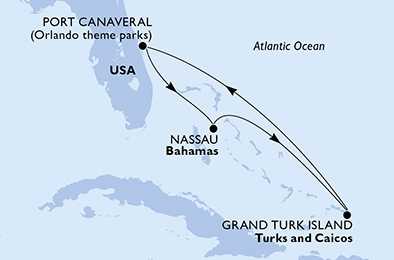 | Den 4 | Grand Turk, Turks a Caicos, (připlutí: 08:00 | odplutí: 18:00) |