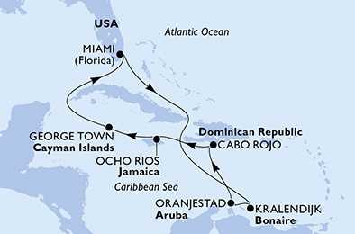 | Den 7 | Cabo Rojo, Dominikánská republika, (připlutí: 08:00 | odplutí: 17:00) |