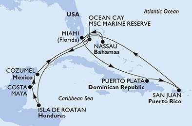 | Den 9 | Ocean Cay MSC Marine Reserve, Ocean Cay, (připlutí: 08:00 | odplutí: 17:00) |