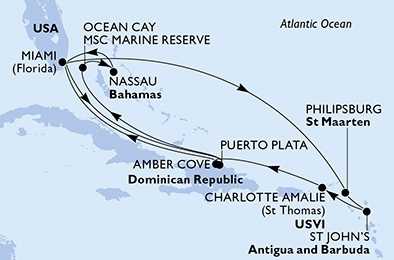 | Den 5 | Ocean Cay MSC Marine Reserve, Ocean Cay, (připlutí: 08:00 | odplutí: 18:00) |