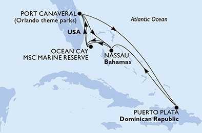 USA, Dominikánská republika, Bahamy z Port Canaveralu na lodi MSC Seashore