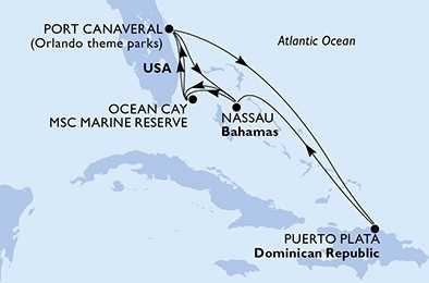 USA, Dominikánská republika, Bahamy z Port Canaveralu na lodi MSC Seashore, plavba s bonusem