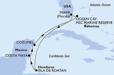 | Den 7 | Ocean Cay MSC Marine Reserve, Ocean Cay, (připlutí: 08:00 | odplutí: 20:00) |