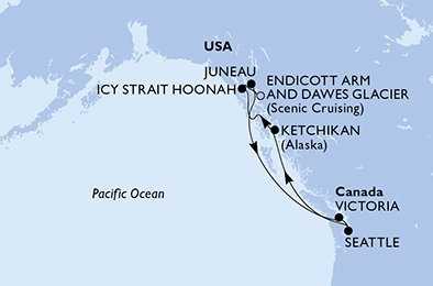 | Den 6 | Juneau (Aljaška), USA, (připlutí: 14:00 | odplutí: 22:00) |