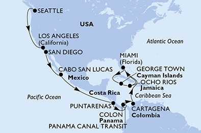 USA, Mexiko, Kostarika, Panama, Kolumbie, Kajmanské ostrovy, Jamajka ze Seattlu na lodi MSC Poesia, plavba s bonusem