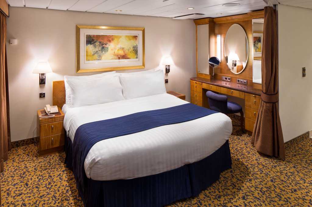 Ubytování v kajutě vybrané kategorie. Kajuty jsou vybavené samostatným sociálním zařízením, klimatizací, TV, minibarem, šatní skříní, kosmetickým stolkem, vysoušečem vlasů, trezorem a telefonem. Přístavní poplatky, portýrské služby při nalodění a vylodění, denní úklidový servis a výhody Vámi zvolené třídy ubytování.