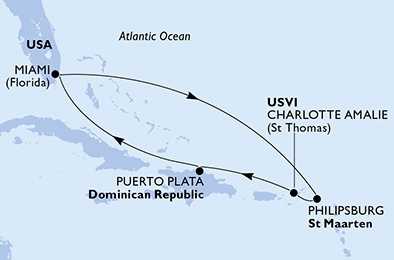 | Den 5 | Charlotte Amalie, Americké Panenské ostrovy, (připlutí: 07:00 | odplutí: 14:30) |