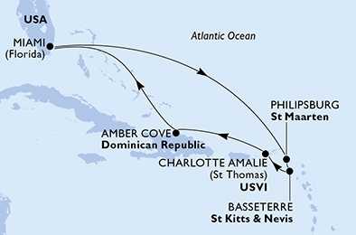 | Den 6 | Charlotte Amalie, Americké Panenské ostrovy, (připlutí: 07:00 | odplutí: 15:30) |