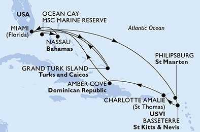 | Den 13 | Ocean Cay MSC Marine Reserve, Ocean Cay, (připlutí: 08:00 | odplutí: 18:00) |