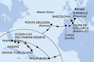 | Den 5 | Ocean Cay MSC Marine Reserve, Ocean Cay, (připlutí: 08:00 | odplutí: 18:00) |