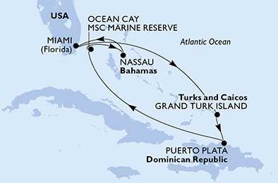 | Den 6 | Ocean Cay MSC Marine Reserve, Ocean Cay, (připlutí: 08:00 | odplutí: 18:00) |
