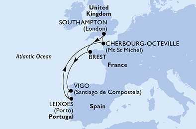 | Den 5 | Leixoes (Porto), Portugalsko, (připlutí: 07:00 | odplutí: 18:00) |