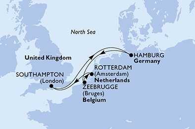 | Den 1 | Southampton, Velká Británie, (připlutí: --:-- | odplutí: 20:00) |