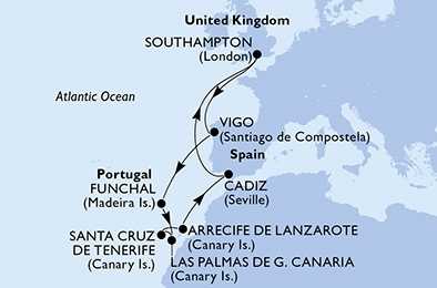 | Den 6 | Las Palmas, Gran Canaria, (připlutí: 13:00 | odplutí: 21:00) |