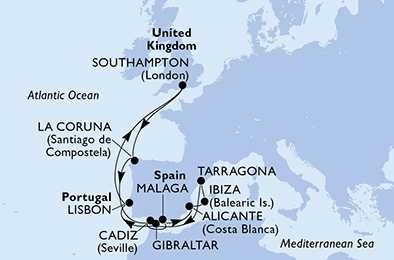 | Den 11 | Gibraltar, Velká Británie, (připlutí: 07:00 | odplutí: 16:00) |