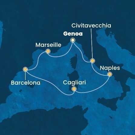 Dárek: Výlet zdarma: prohlídka Janova Průvodce: Služby česky/slovensky mluvícího průvodce po celou dobu zájezdu. Doprava: Autobusová doprava do a z přístavu.Trasa: Praha - Plzeň - Rozvadov - Janov a zpět.Na vyžádání je možné přidat nástupní místa po trase. Pro místa mimo trasu můžeme zařídit navazující spoj za příplatek. Na vyžádání zajistíme i leteckou dopravu. Možnost vlastní dopravy. V případě dopravy mimo hlavní skupinu je třeba počítat s tím, že doprava do a z přístavu a nalodění je ve vlastní režii. Dále u této varianty nelze zaručit možnost zúčastnit se programu prvního a posledního dne.Plavba: Ubytování v kajutě vybrané kategorie (7 nocí). Kajuty jsou vybavené samostatným sociálním zařízením, klimatizací, TV, šatní skříní, kosmetickým stolkem, vysoušečem vlasů, trezorem a telefonem. Přístavní poplatky, portýrské služby při nalodění a vylodění, denní úklidový servis a výhody Vámi zvolené třídy ubytování. Strava na palubě: Plná penze - snídaně, obědy a večeře v servírované či bufetové restauraci. Nápoje pouze v bufetové restauraci: voda, káva, čaj u snídaně a u svačiny v odpoledních hodinách, u oběda a večeře voda. Zábava na palubě: Volné využití veřejných prostor - bazénu, vířivek, fitness centra a jiných sportovně-rekreačních zařízení, bezplatné zapůjčení plážových osušek, účast na všech akcích pořádaných na palubě – animační programy pro děti i dospělé, dětský klub (pro všechny věkové kategorie), večerní představení v divadle, živá hudba, lekce tance apod. Pojištění proti úpadku: Pojištění CK proti úpadku u pojišťovny Generali.
